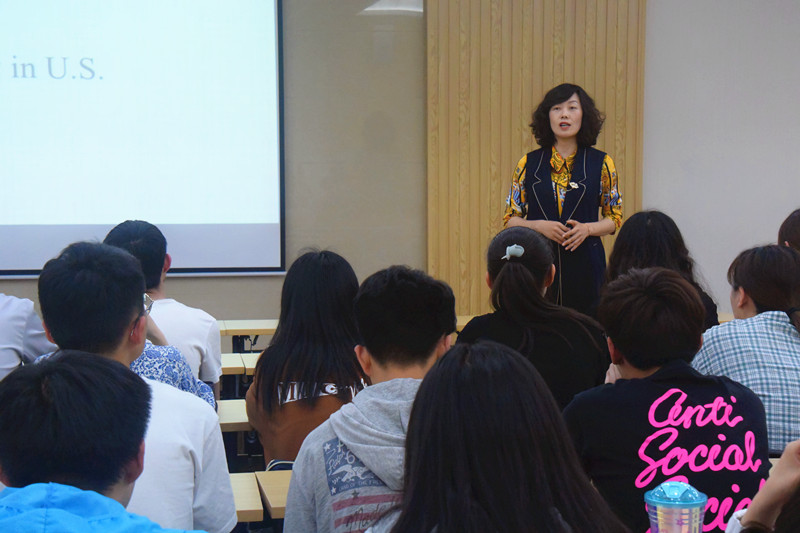 胡沁彤讲述了自己在美国多年的学习、工作及生活经历,讲解了美国田纳西大学等几所高校的概况。她表示,大学教育可以改变人生,为了更好的未来,建议同学们要走出去,开阔眼界,提升自己的外语技能,增加就业砝码。胡沁彤从留美学习的原因、留学需要做的准备、美国的研究生生活和毕业后的工作等方面为同学们讲解了关于留美的相关事宜,她希望大家一定要在大学期间打下坚实的专业基础,提前准备相关资料,为未来的国外学习做好充分的准备。互动环节中,她详细地回答了学生提出的留学问题。