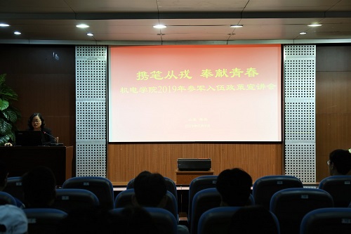 5月8日,机电学院举办2019年参军入伍政策宣讲,机电学院团委辅导员林美玫担任主讲人,学院退伍老兵代表、各年级有意愿参军入伍的同学和部分毕业生参加了此次宣讲。