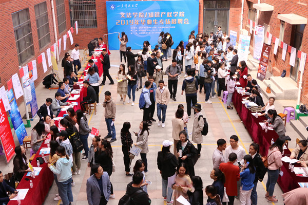 5月10日,文法学院/知识产权学院2019年毕业生专场招聘会在J9楼南广场顺利举行。