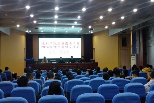 4月28日,地科学院举办了2016级资勘专业考研交流会,地科学院副院长常象春,专业课教师宋召军、杨仁超、周长付等以及2015级考研成功学生代表出席此次交流会。