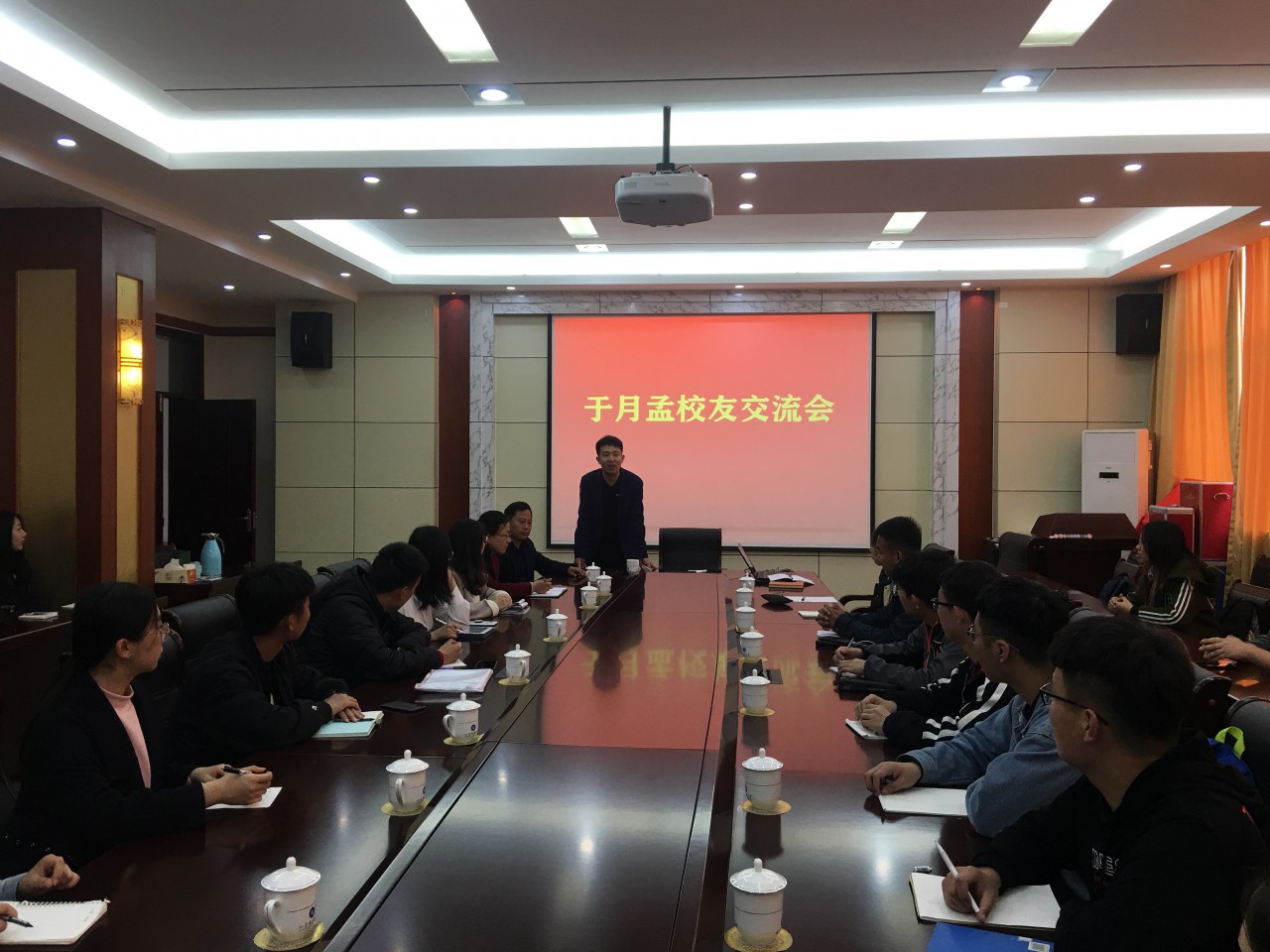 4月29日,校友、喀什市英吾斯坦乡党委副书记于月孟回访母校,与在校学生交流基层就业经验。各学院有基层就业意愿的学生代表参加活动。