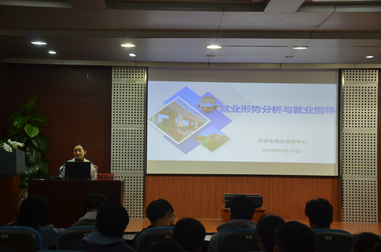 4月26日,机电学院召开2019届毕业生就业工作指导会。我校大学生就业指导中心老师刘梅月应邀做 “2019年就业形势分析与就业指导”专题讲座。 刘梅月结合机电学院毕业生近三年的就业情况,具体分析了机电学院毕业生的就业特点和就业趋势,详细解读了《2019年就业指导蓝皮书》。她提醒同学们要端正就业观念,提升就业技能,并对现场同学提出的问题进行了详细解答。(通讯员:樊玉华 杨治宽 实习编辑:毕泗兴)