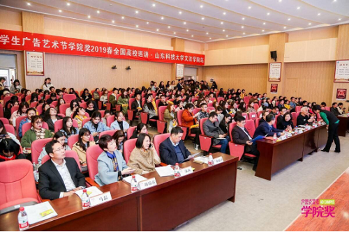 近日,第17届中国大学生广告艺术节学院奖春季赛巡讲暨京东创意实践基地授牌仪式在学校举行。青岛市西海岸新区品牌推广办公室主任石强,广告人文化集团副总裁李建强,京东集团华北区校园业务负责人徐子庆,新型数字营销公司bangX创始人兼CEO王申帅,二更传播首席创意官梁景林,文法学院党委书记徐玲平、院长孙法柏、副书记兼副院长陈福卫出席此次活动。来自西海岸新区品牌推广办公室相关负责人、8家企业代表和驻青高校广告学专业的师生代表参加此次活动。