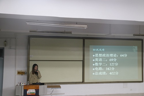 讲座中,闫瑞舰学生们介绍了上浮分的原因和影响,并针对考研各学科复习安排进行了详细的阶段分析;刘擢茜解释了如何认识自我、规划未来以及如何提高学习的效率和节奏,并且详细讲述了初试、复试复习、考试的注意事项;孟蓓蓓介绍了考研可能需要的书籍;刘旭东着重强调了考研者的心态问题,并关于考研期间应如何注意休息与调整给出了建议;聂飞介绍了对考研有帮助的网站、公众号、以及手机软件等,并针对如何将其灵活运用给出建议;讲座最后,刘健讲述了自身考研的经验。(通讯员:韩梅 王鹏程 实习编辑:姜森)