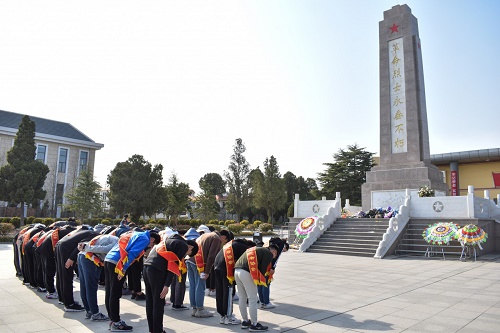 烈士墓碑前献花。紧接着,志愿者们有序地参观了烈士纪念馆。临行前,全体成员再次在纪念碑前鞠躬致敬