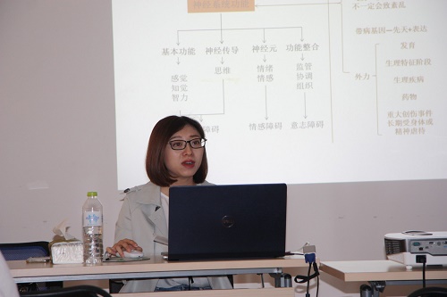乔杨以“特别的爱给特别的你——大学生心理异常应对”为题,就如何做好精神障碍学生的关爱和引导进行了讲解。她简要介绍了精神分裂、心境障碍等六种高校易发、多发精神障碍,并结合实际工作中遇到的典型案例,对类似情况的工作思路进行了梳理和交流。她指出,对精神障碍学生,辅导员要给予更多的关心和关爱,一是给予关注之爱,及时发现心理异常个体;二是给予保护之爱,关注伤害风险;三是给予转介之爱,协助学生尽快获得专业帮助;四是给予预警之爱,尽快建立家校的合作联盟;五是给予协助之爱,为学生在校生活保驾护航;六是给予持续关注之爱,建立长期的关爱机制。