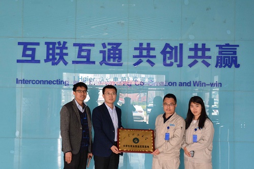4月12日,矿业学院与青岛海尔热水器有限公司举行了“山东科技大学大学生就业创业实践基地”揭牌仪式。矿业学院团委书记马鹤、辅导员周尚涛与青岛经济技术开发区海尔热水器有限公司制造部长韩守亮等参加了揭牌仪式。
