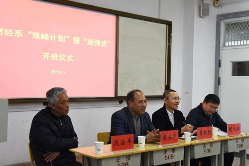 近日,济南校区财经系举行2019年“珠峰计划”暨“施强精英培训班”开班仪式。济南校区党委常务副书记高永军、财经系主任段治平、浙江施强集团商学院院长李红胜出席开班仪式。仪式由济南校区财经系党总支副书记、副主任胡宝征主持。