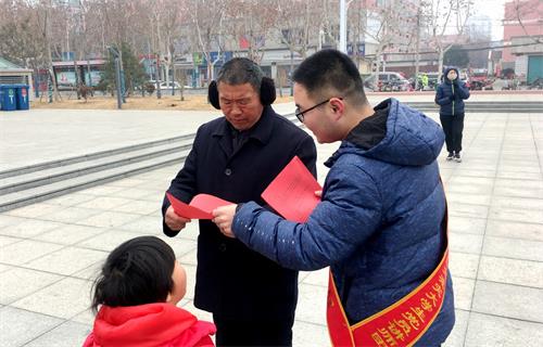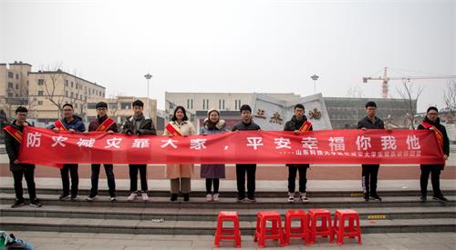 2月19日,我校土建学院防灾减灾大学生党员讲师团一行利用寒假来到济宁市金乡县王杰广场开展了防灾减灾知识宣传普及活动。