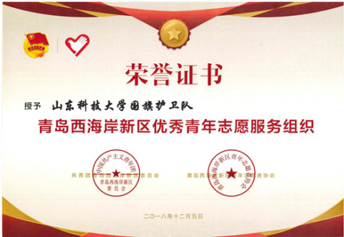 为深入贯彻落实共青团青岛西海岸新区委员会工作要求,加快推进青年志愿服务工作,共青团青岛西海岸新区委员会决定组织开展2018年最美青年志愿者、优秀青年志愿者、优秀青年志愿服务组织、优秀青年志愿服务项目评选活动。我校测绘科学与工程学院在校大学生组成的山东科技大学青岛校区国旗护卫队荣获西海岸新区“优秀青年志愿服务组织”称号。
