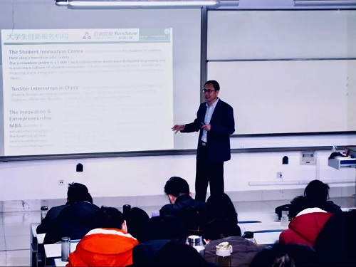 袁铭宏以“双创是一场运动吗?”为题和同学们展开互动,并分别从启迪控股双创解决方案、启迪之星创新高铁网络为切入点进行详细的介绍,结合“大学生创业如何借力”的角度深层次剖析了当下大学生创业的现状,并提出“创业企业四步成长之道”来解决当下的创业困境。