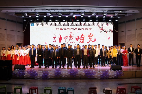 开场舞《CRAZY BOOM》揭开了联欢会的序幕。在本次联欢会中,有《我为你而来》、《聚宝盆》等小品相声,有《父亲写的散文诗》、《记忆时光》等歌曲,有情景剧《那些年》,还有《礼仪之邦》、《burn to dance》等舞蹈表演。期间,主持人公布了计算机学院十大优秀学生、十大文体之星、优秀志愿者的学生名单以及获得新媒体建设、“核心价值观”、“十律伴我行”教育实践先进集体的名单,并由领导为上述个人和集体颁发奖状。联欢会在歌曲《因你而在》中圆满落幕。(通讯员:赵雨晨 于思瑶 实习编辑:姜森)