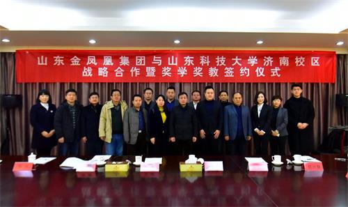 高永军与张继博现场签署了《山东金凤凰集团有限公司与山东科技大学济南校区合作协议》。