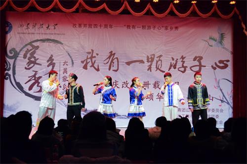 本次比赛共分为两个部分,第一环节,参赛队伍结合幻灯片来介绍自己的家乡风貌,追忆改革开放四十年来的发展变化;第二环节,参赛队伍结合家乡方言通过朗诵、演唱、歌舞、相声、小品等形式,展现家乡特色,抒发对家乡的热爱。