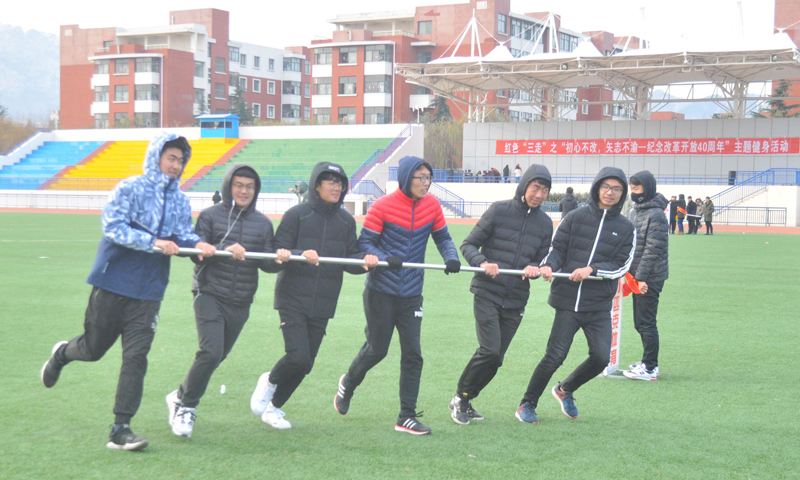12月8日,校团委、校学生会在风雨操场举办红色“三走”之“初心不改,矢志不渝——庆祝改革开放四十周年”主题健身活动,来自16个学院代表队的384名同学现场参加了健身活动。