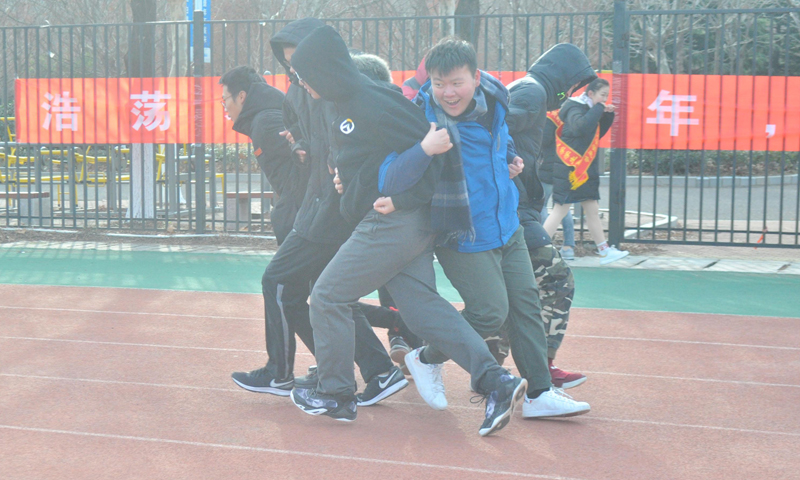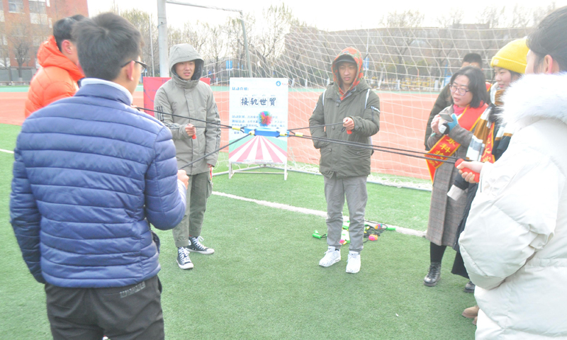 活动现场,代表改革开放各个历史时期特色的活动区域热闹非凡,一个个兼具趣味性与思想性的红色主题活动精彩上演。“联产包干”要求同学们自行制作履带通过指定区域,“同心协力”需要同学们背对背、手挽手通过规定距离,“合作共赢”要求用一面鼓颠球到达足够个数,“角速度跑”则需要6人共握一根横杆绕过指定障碍物,还有需要选手背夹气球通过规定距离的“福娃送喜”、需要使用协力板完成接力的“砥砺前行”等活动。队员们或争分夺秒、你追我赶,或团结一心、密切配合,在热烈的活动氛围中体验改革开放的魅力与成就。