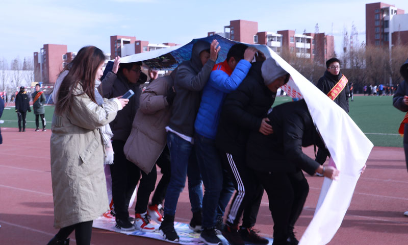 本次活动围绕改革开放40年中6个重大历史事件,将整个风雨操场划分成了“小岗春风”“港澳回归”“接轨世贸”“嫦娥探月”“奥运记忆”“逐梦小康”六个趣味活动场地。每个活动场地设置相应历史时期的知识普及展板,并对应一个主题健身活动。每个活动均需6人一组配合完成,各学院代表队的24名同学要分成4组参加活动,最终以各代表队完成所有比赛的总时间决定排名。