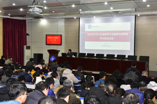 12月11日,我校举行全国教育大会精神专题宣讲会,发展规划处处长李平为自动化学院、计算机学院、数学学院、电子学院300余名师生宣讲全国教育大会精神。