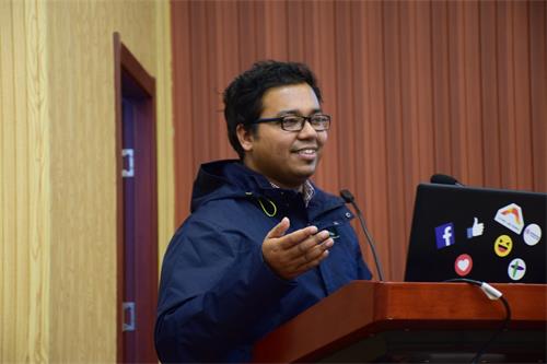 Mohammad Shidujarma从事智能机器人设计制作工作多年,对HCI(Human-Computer-Interaction)、HRI(Human-Robert-Interaction)、HMI(Human-Machine-Interaction)有专门研究,是智能机器人交互领域的专家,现从事社交机器人开发基于情感表达的交互设计,任IEEE机器人与自动化学会(RAS)认知机器人技术委员会成员,2018年在康奈尔大学信息科学系交换研究。他分别从不同文化背景下机器人的人机互动、类人化机器人的研究现状以及实验室成果和充电机器人在距离和户外应用方面研究三个方面,介绍了具有自主移动性的设备(机器人)可用于家庭或办公室环境中的各种场景。随后,Mohammad Shidujarma针对学生们提出的问题进行了详细解答。(通讯员:武宇翔 实习编辑:毕泗兴)