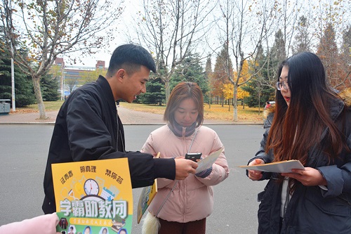 宣传活动中,研究生会成员为感兴趣的同学详细耐心地讲解学霸助教团微博在线答疑的参与方式,希望通过线上平台帮助同学们解决在高等数学、线性代数、概率论与数理统计课程的学习中遇到的困难。此次学霸助教团宣传活动引起了学校学生的广泛关注,数学学院研究生会官方微博关注量明显增加。