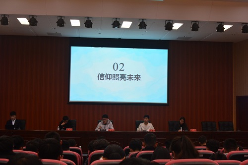 报告会上,与会人员一同观看了专题片《将改革进行到底——时代之问》,感受改革开放四十年的重大变革及成就,观看完毕后,四名学生代表将自己的大学经历作了分享。在分享中,他们表示作为学生应以学业为重、明确学习目标,全方位、多方面的发展自身能力,要秉持踏实勤劳的学习态度,合理利用时间。四名学生代表分享结束后与在座同学进行了交流,并以问答的形式对同学们的问题进行了解答并提出建议。
