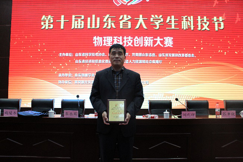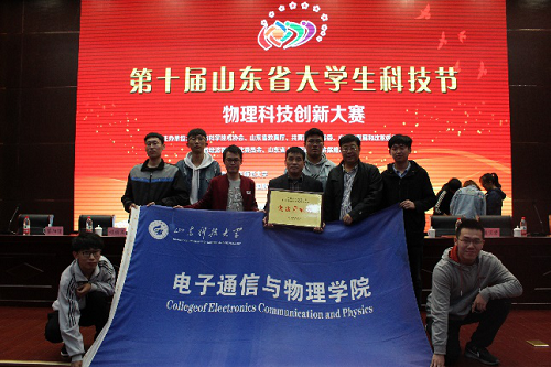 近日,由山东省科学技术协会、山东省教育厅、共青团山东省委、山东省发展和改革委员会、山东省经济和信息化委员会、山东省人力资源和社会保障厅主办,山东物理学会、山东师范大学承办的山东省第十届大学生科技节--物理科技创新大赛在山东师范大学长清湖校区隆重举行。在本次大赛中,代表学校参赛的7支队伍共获一等奖2项、二等奖4项、三等奖1项。