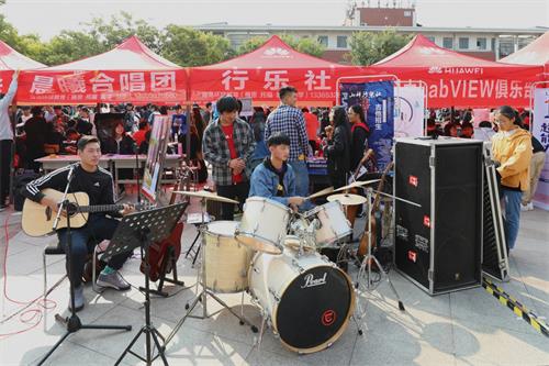 随着晨曦来临,各个社团负责人就开始了准备工作,八点前会场便已布置完毕,颇具规模。活动现场以繁星广场为中轴贯穿东西侧马路,南至人行横道,110个学生社团在其中排列有致。无论天文地理、琴棋书画还是社交工艺、自然人文,应有尽有、异彩纷呈。各个社团积极展示社团成果,表演展示自身魅力,爱乐团、星雨吉他社的流行摇滚音乐表演吸引不少学生驻足聆听观看;梅花桩的古典武技和搏击协会的倾力表演引得掌声连连;诸多科技协会和艺术协会充满创新的展品令人叹为观止;承载着礼仪和公益使命的社团同样人气不减;T.O.S悠悠球协会的球上下翩飞,唤醒了对童年的梦;S.K.S曳步舞舞者自信十足,在变幻舞步之间尽情展示舞蹈的魅力;B.BOX协会的节奏敲打着青春的节奏……各个社团在纳新的过程中高潮迭起,尽情释放本社的活力、动力、冲击力,吸引更多学生加入。