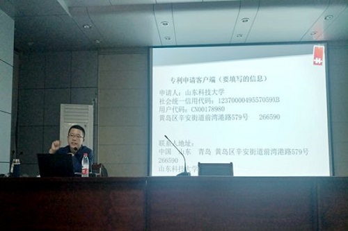 朱庆文以《专利介绍及专利申请》为题,并以他的实际经历讲述了申请专利的重要性。本期讲坛主要讲解了专利的介绍、专利申请材料撰写、专利审批流程以及专利申请注意事项四个方面的内容。在专利申请注意事项方面,他以自己已授权的发明专利为与会学生做了详细的解释。讲坛结束后,朱庆文对学生们提出的问题一一进行了解答。