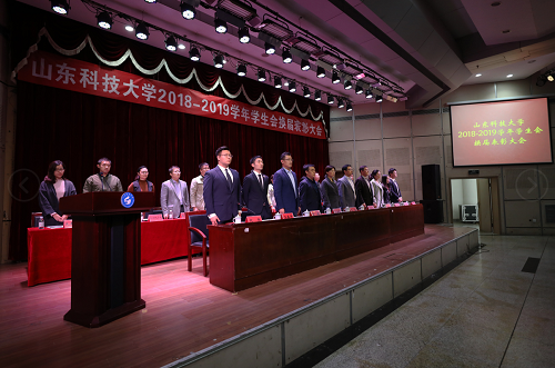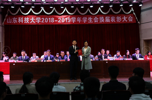 大会在庄严的国歌中拉开序幕。卞西春宣读了《关于表彰2017-2018学年校学生会优秀学生干部和优秀干事的决定》,表彰了王钰涵等82名学生会干部,张岩岩等207名学生会干事。申兆亮宣读了《关于公布山东科技大学2018-2019学年校学生会干部名单的通知》及2018-2019学年学生会聘任秘书长名单。与会领导为受表彰的学生颁发了荣誉证书,新任学生会主席马喜平同学向学生会秘书长张璐老师颁发了聘书。