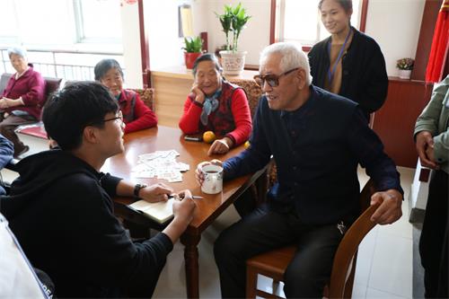 志愿者们热情大方、积极主动,在活动中与老人们促膝长谈,聊家常生活,主动帮助老人打扫卫生,为他们捶腿捶背,老人们被志愿者的热情打动,脸上溢满了笑容。紧接着,志愿者给老人们带来了丰富多彩的节目,唱军歌、唱京戏、说相声……每一个节目都渗透着志愿者们对老人们的尊敬与爱戴。