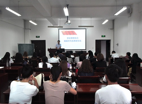 王凯以《坚定理想信念,做新时代优秀研究生》为题,从理想信念是什么、当代中国的信仰状况、理想信念是共产党人的命脉灵魂等五个方面进行讲解,分析讲解党的十九大报告和习近平总书记对理想信念的重要论述,讲述焦裕禄、孔繁森、谷文昌等先进人物的事迹,列
