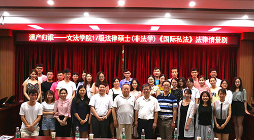 据悉,本次法律情景剧由2017级法律硕士(非法学)全体师生历时一个多月精心准备,克服了诸多困难,整部剧才得以完整呈现。该情景剧的演出,使同学们对于国际私法中“识别”“外国法的法律适用”等问题都有了进一步的认识。(文法学院供稿 责编:颜凤)