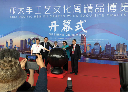 亚太手工艺品文化周是由青岛市人民政府和中国工艺美术协会共同主办、市文化广电新闻出版局承办、市工艺美术协会协办的文化交流盛会。作为“后峰会”国际交流的重要展会项目,亚太精品博览会在2号展馆开幕,荟萃亚太“指尖绝活”的十二大展区,一展国际标准、中国风范、山东文化和青岛特色的亚太传统手工风尚。(通讯员:李雷 责编:颜凤)