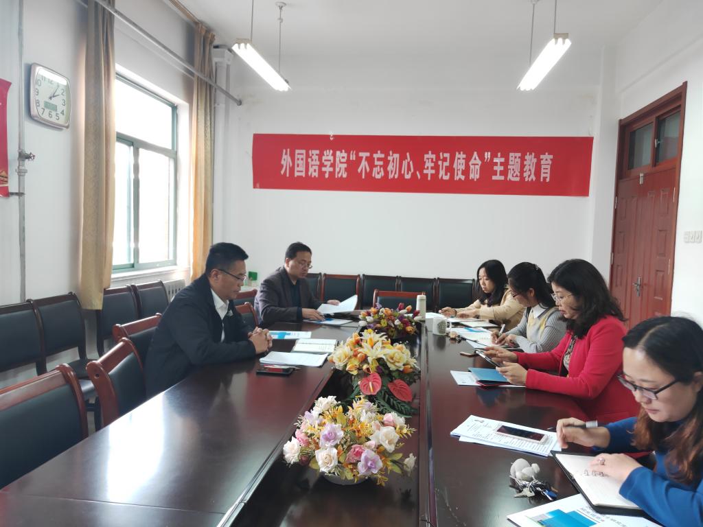 根据学校“不忘初心、牢记使命”主题教育工作安排,结合学院实际,10月22日,外国语学院围绕“理想信念、宗旨性质、担当作为”三个专题召开主题教育第二次集中交流研讨会,学院领导班子共7人参加。