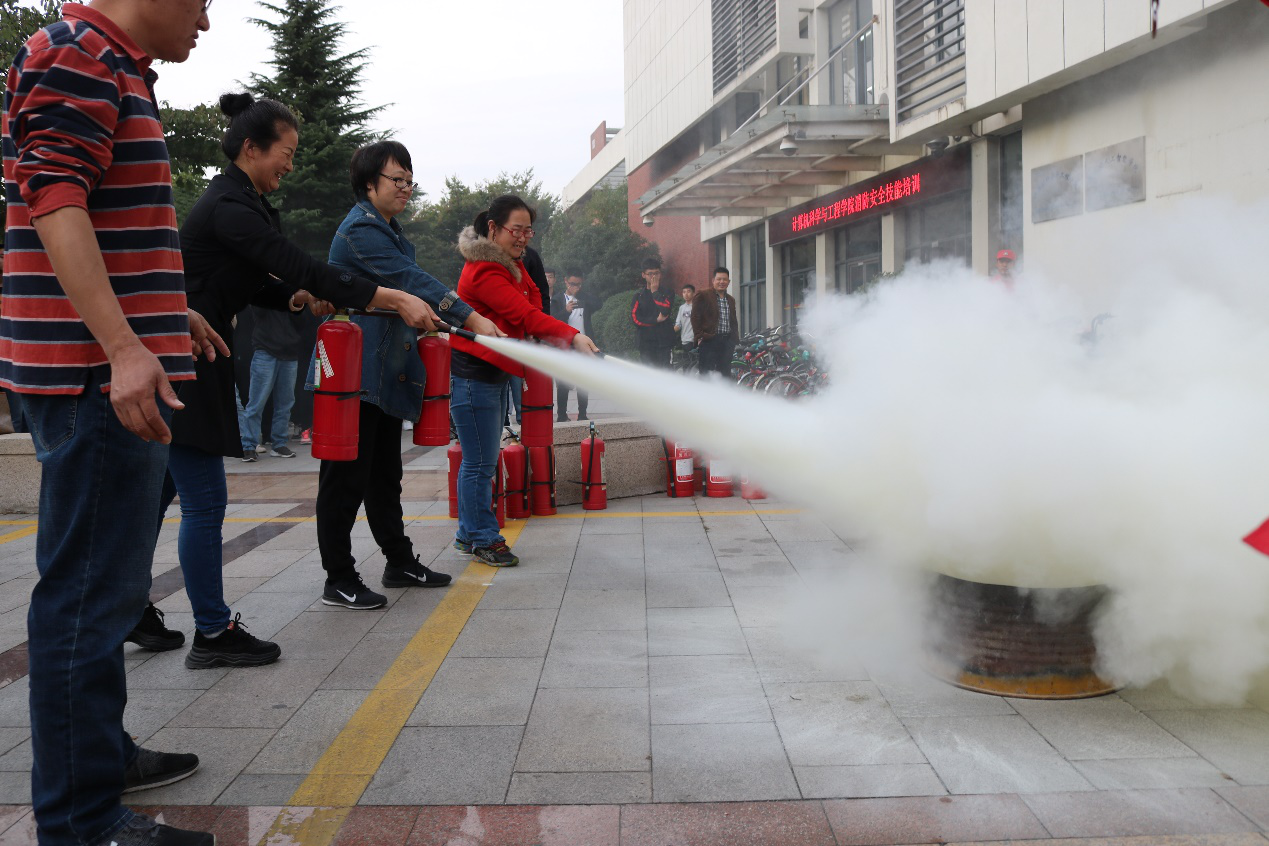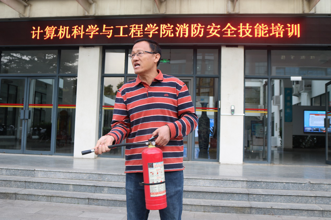 10月22日,为普及消防安全知识,计算机学院在J13号楼西侧开展了消防安全技能培训,学院党委书记牟仁刚,保卫处副处长王春暖,学院党委副书记、副院长徐明磊,保卫处消防科科长李灿军等相关工作人员,学院教职工代表及学生代表参加了本次活动。