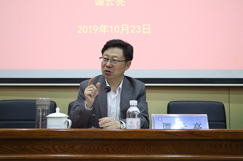 10月23日,矿业学院院长谭云亮为学生党员讲授“讲奉献 有作为”主题党课。矿业学院全体学生党员参加了党课。