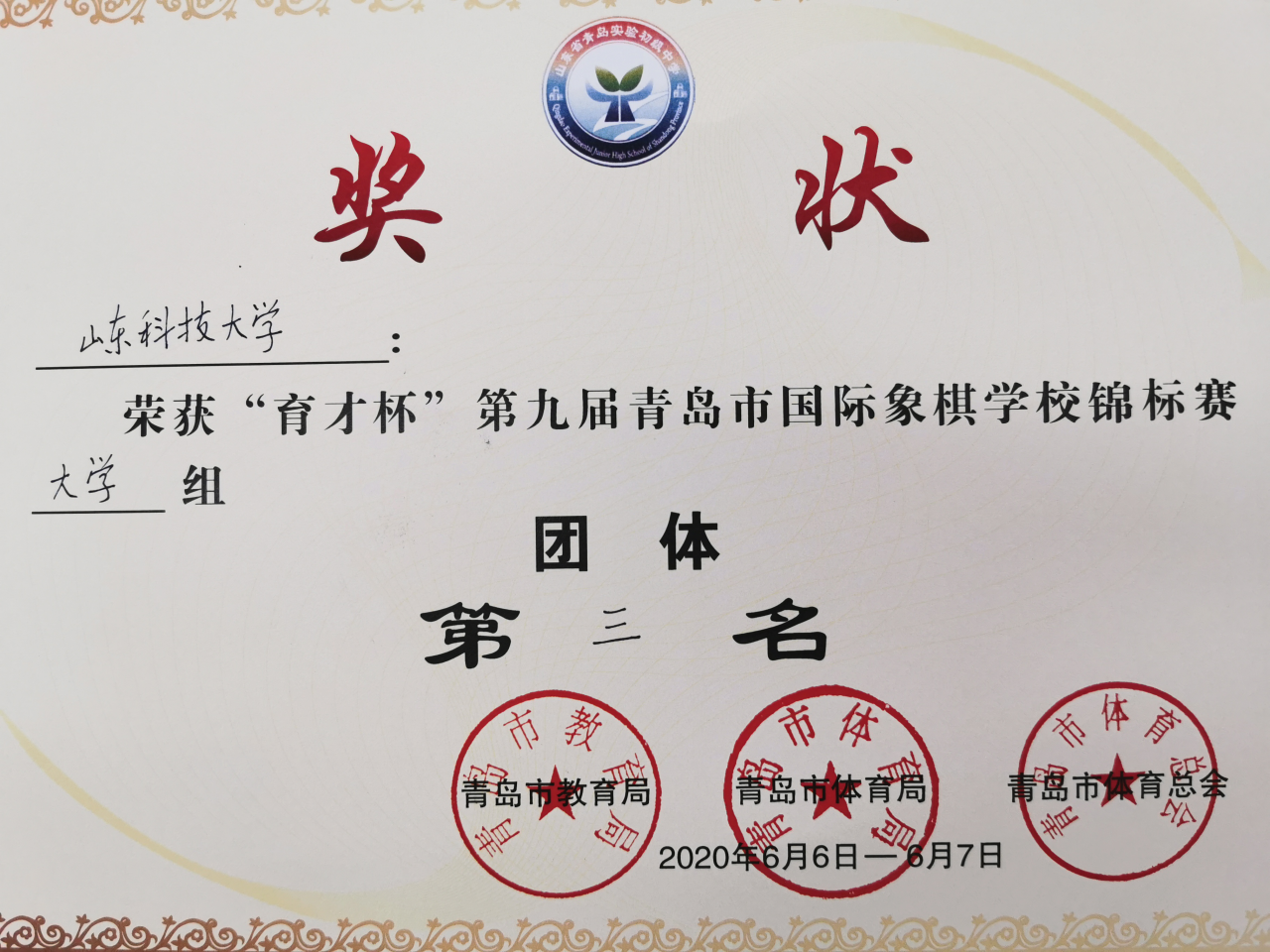 近日,由青岛市教育局、青岛市体育局、青岛市体育总会联合主办的“育才杯”第九届青岛市国际象棋学校锦标赛顺利举行。本届国际象棋锦标赛大学组云集了山东大学、山东科技大学、青岛大学、青岛农业大学等多所驻青高校的优秀国际象棋爱好者。比赛受到了学校的高度重视,由体育学院精心组织,共选拔了7名同学参加比赛。 经过比赛,文法学院2018级法学专业廖辰获得高校组个人第一名,交通学院2018级交通运输专业李玥祺获得高校组个人第五名,山东科技大学代表队获团体总成绩第三名。(体育学院供稿 实习编辑:毕泗兴)
