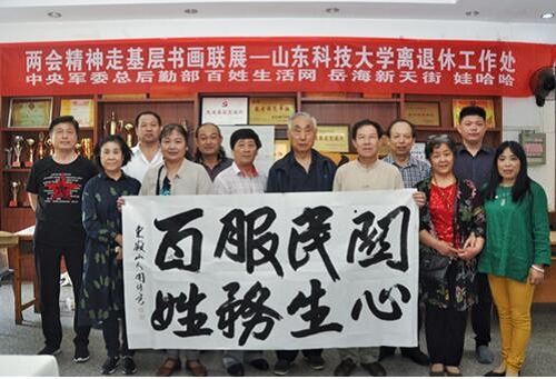 为深入贯彻学习两会精神,展示离退休人员文化养老成果,离退休工作处与中央军委总后勤部百姓生活网等单位联合组织的两会精神走基层现场笔会在泰安校区离退休工作处举办。
