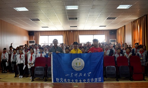 5月10日,学校防灾减灾大学生党员讲师团一行在青岛开发区抬头小学开展了主题为“行动起来,减轻身边的灾害风险”的防灾减灾知识宣讲会,抬头小学120余名师生参加了此次宣讲会。