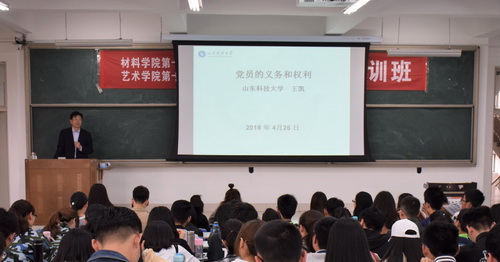 4月26日,艺术学院党委书记王凯为材料学院和艺术学院入党积极分子作了题为《党员的义务和权利》的专题讲座。