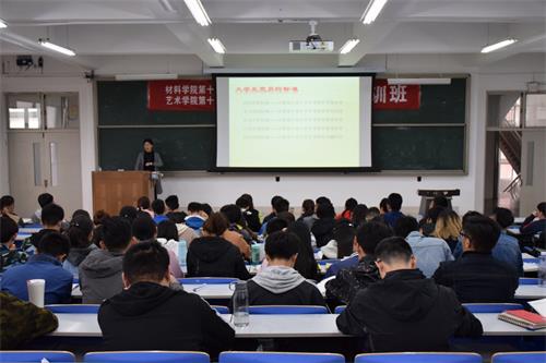 4月23日,校团委书记王震为材料学院和艺术学院入党积极分子作了题为《党员标准、入党动机和党员发展的工作程序》的专题讲座。