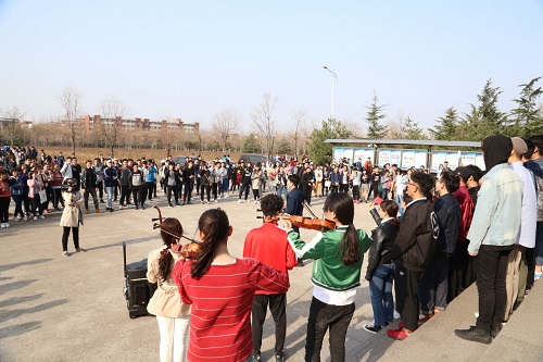 来自大学生艺术团。当熟悉的旋律响起,气氛渐渐热烈,围观的科大学子自发加入