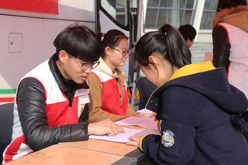 活动现场,红十字服务中心的志愿者向前来献血的同学详细介绍献血的注意事项,细心询问献血者的身体状况与近期用药情况、作息情况、视力状况并指导填写信息表。对于符合献血条件的同学,红十字志愿者在为其检测并记录血型、血压、脉搏后,安排其参与献血。献血结束后,志愿者为参与献血的同学颁发了无偿献血证和爱心纪念礼品,并叮嘱同学们献血后的相关注意事项。
