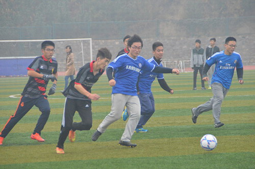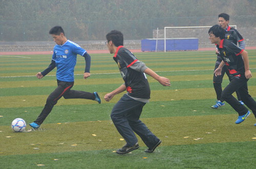 11月14日,交通学院第一届专业间足球赛决赛暨闭幕式在风雨操场举行。学院学生会副主席高苏、孔征宇、刘少龙及校足球协会裁判代表李飞出席闭幕式并观看比赛。