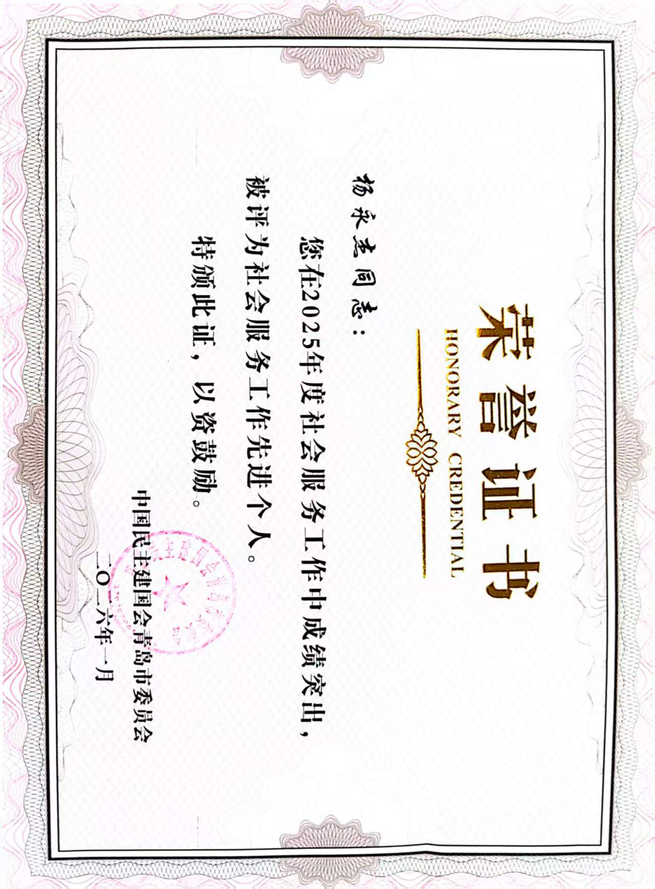 民建山东科技大学支部荣获民建青岛市委会颁发的“2025年参政议政工作先进集体”,支部主委高升、会员马慧子被评为“2025年度参政议政工作先进个人”,会员杨永杰被评为“2025年度社会服务工作先进个人”,支部提交的2篇成果被民建山东省委会评为“2025年度全省参政议政优秀成果”,10篇成果被民建青岛市委会评为“2025年度优秀参政议政成果”。
