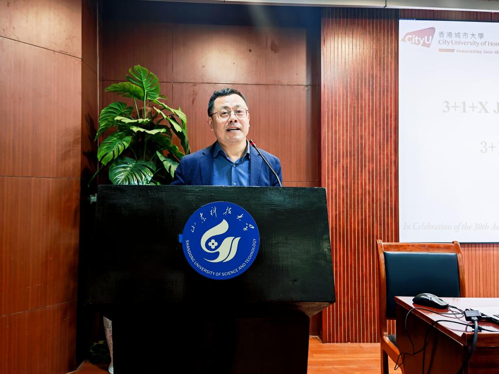 王永君在致辞中表示,今年3月学校应邀参加国际人才培养暨高校就业创业交流研讨会,期间我校与香港城市大学、香港城市大学青岛研究院就“‘3+1+X’国际人才联合培养”项目达成重要合作共识,率先在机械工程、材料科学与工程、系统工程、资讯系统学、生物医疗工程五个专业领域启动深度合作。本次宣讲会是落实三方合作共识、推进项目实质性落地的重要举措,希望同学们把握机遇,积极投身国际化培养体系,努力成长为符合时代发展需求的高素质复合型人才。