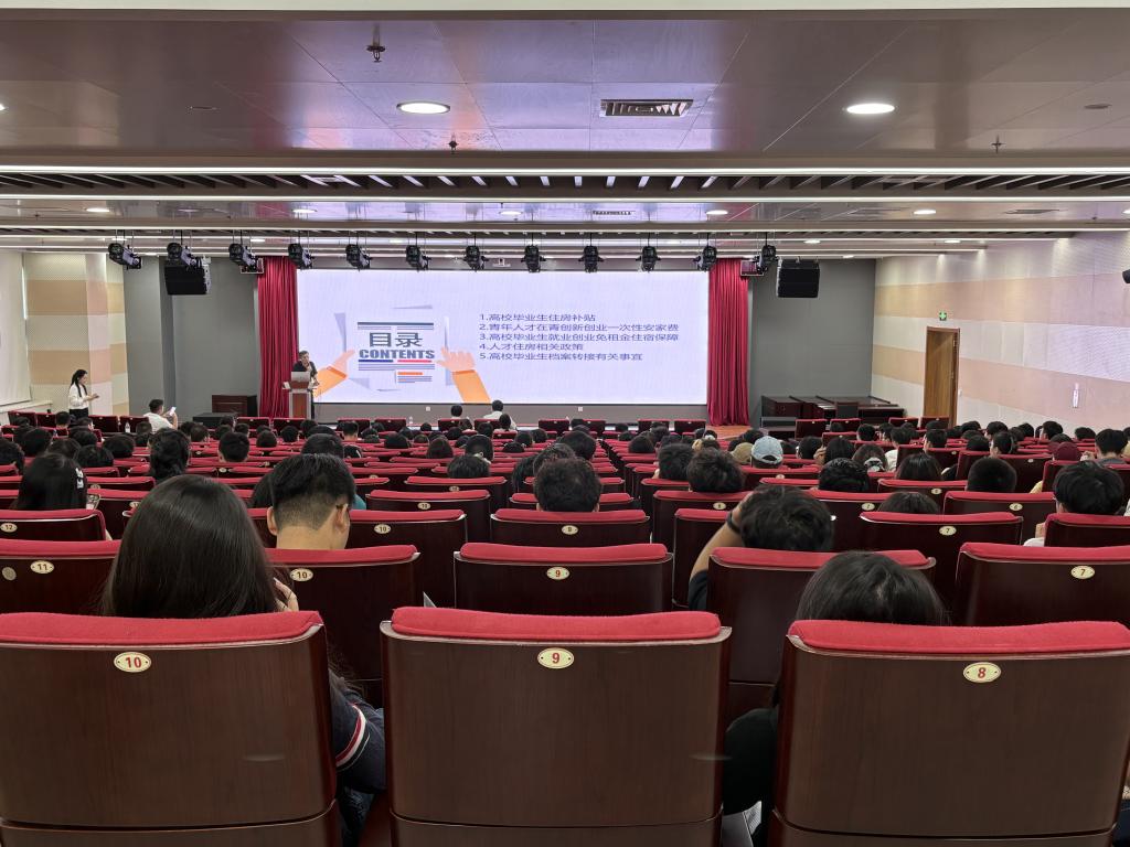 活动中,新区人社局人才服务科宋大存科长聚焦毕业生普遍关注的住房补贴、一次性安家费等人才政策,细致解读了申请方式、补贴标准等。高校服务科鞠友杰科长围绕新区的实习、见习等政策,详细介绍了补贴的申领对象、补贴标准及合作见习基地资源等,鼓励同学们积极参与优质实习、见习项目,提升自身就业竞争力。