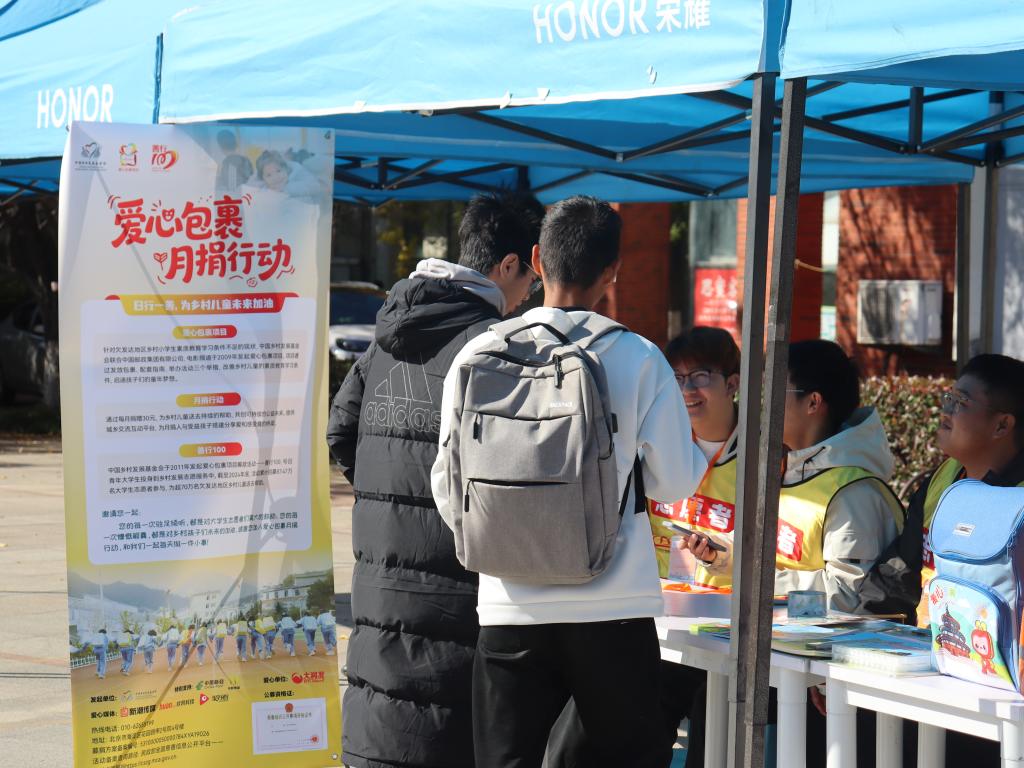 作为中国乡村发展基金会发起的知名公益项目,“善行100”始终以“以持续性教育赋能乡村儿童未来,以互动平台联结城乡情感”为核心理念,致力于为欠发达地区乡村儿童搭建成长助力平台。为让全校师生深入了解项目价值,活动现场精心布置了主题宣传展板,图文并茂地展示乡村儿童的学习生活现状与资助成效;身着统一志愿服装的同学们分工明确,通过发放定制宣传单页、循环播放公益纪实短片、开展互动游戏等丰富形式,耐心讲解项目宗旨、线上线下募捐流程及善款的具体用途,用真挚的讲述传递公益温度,用热情的行动发出爱心邀约。