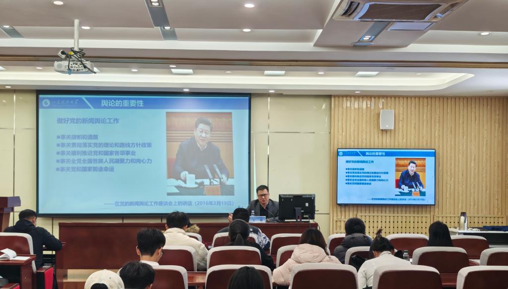 为不断提升我校辅导员思想引领实效,提高辅导员网络舆情处置能力,凝聚校园价值共识,11月20日上午,学生工作处组织2025年新入职辅导员开展思想政治教育方法专题培训,校党委宣传部副部长王鑫担任本期主讲嘉宾。