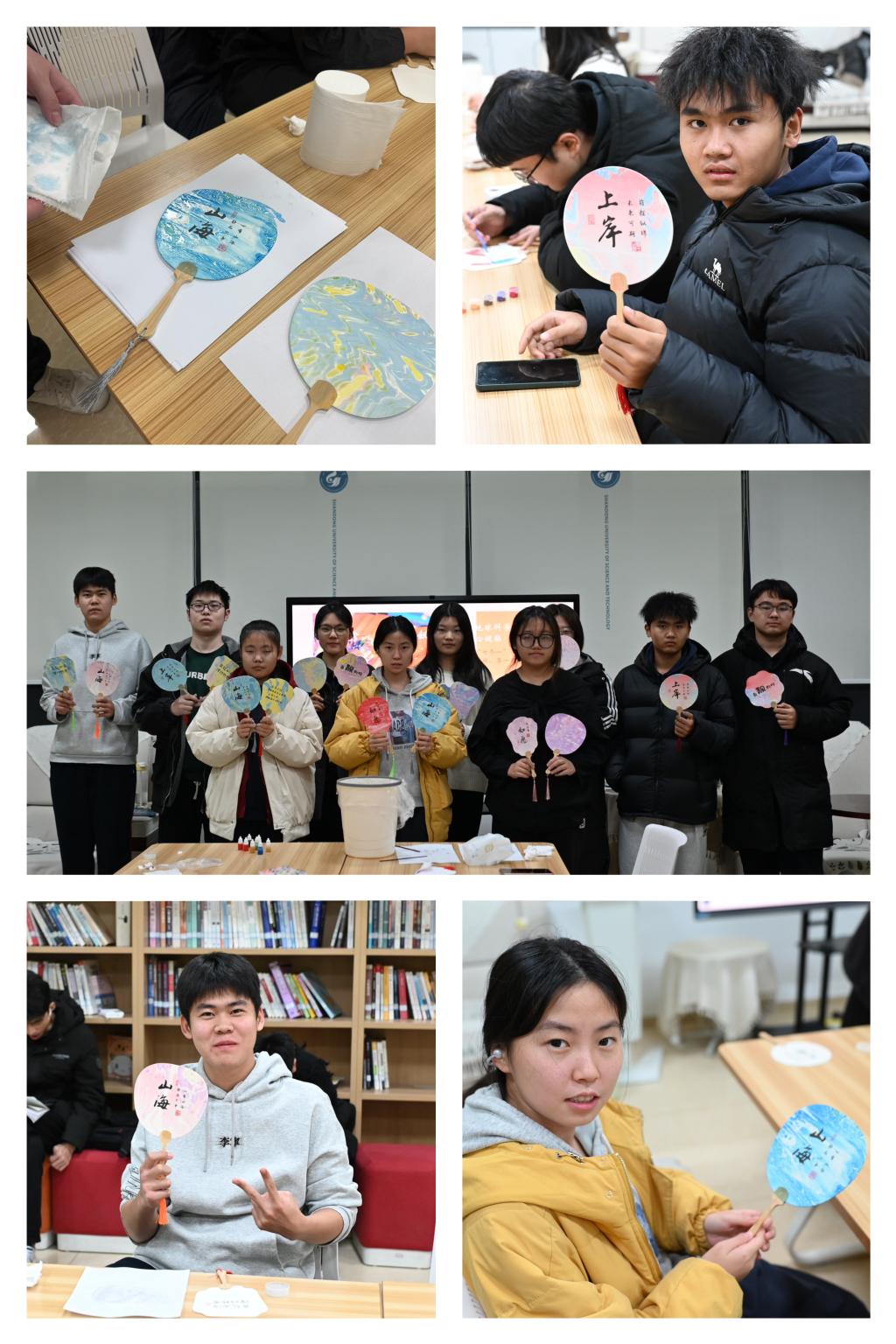 活动以“指间绘心,时光慢叙”为主题,同学们在素扇上自由运用颜料与画笔,或勾勒淡雅花影、或晕染朦胧水色。伴随着轻柔的背景音乐,大家沉浸于每一笔的描绘,在色彩与布局中逐渐释放情绪,体验专注创作带来的内心安宁。现场氛围温馨而宁静,艺术成为连接自我与情感的温柔媒介。来自化工学院的孟子傲同学表示:“在忙碌的学期末,能静下心来画一画,感觉整个人都放松了,像是给心灵放了个假。”